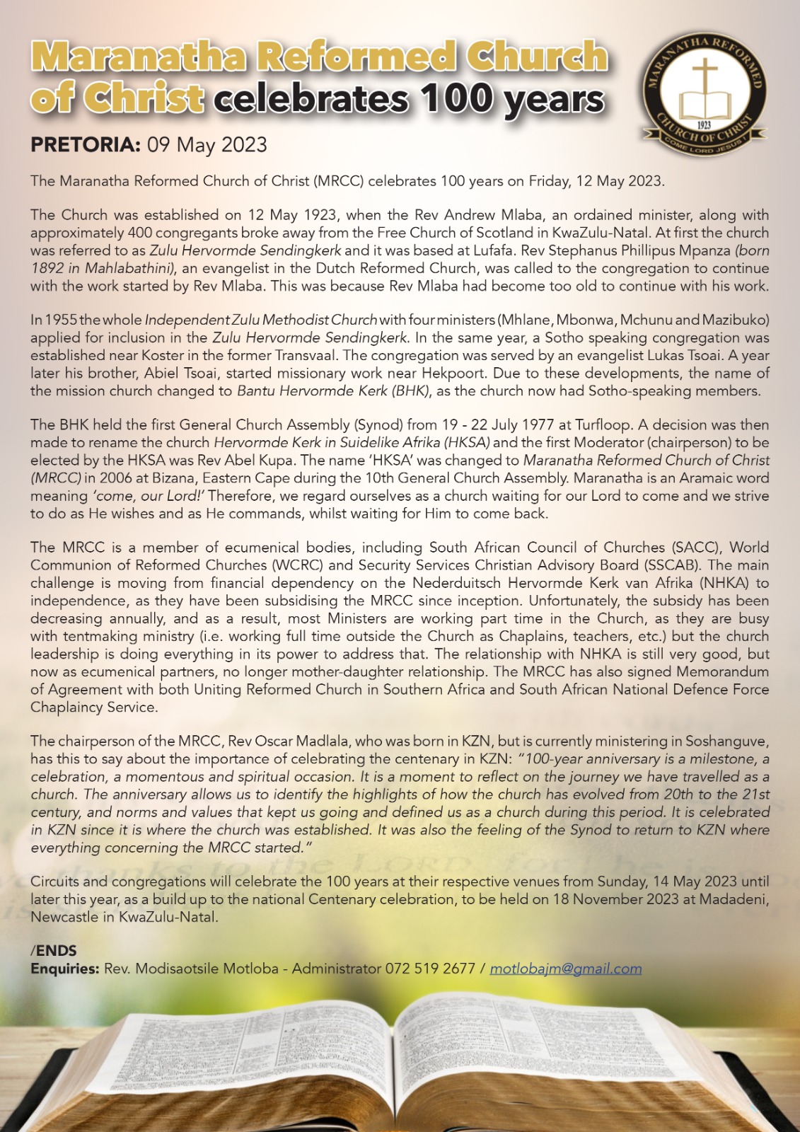 We recognise the important role that the Lord has assigned to His Church to preach the message of love, peace and justice and to free humankind from bondage. Therefore we reiterate our pledge of loyalty and commit ourselves to the Christian cause and to uphold its values and ideals in accordance with the Word of God as attested in the Holy Scripture.